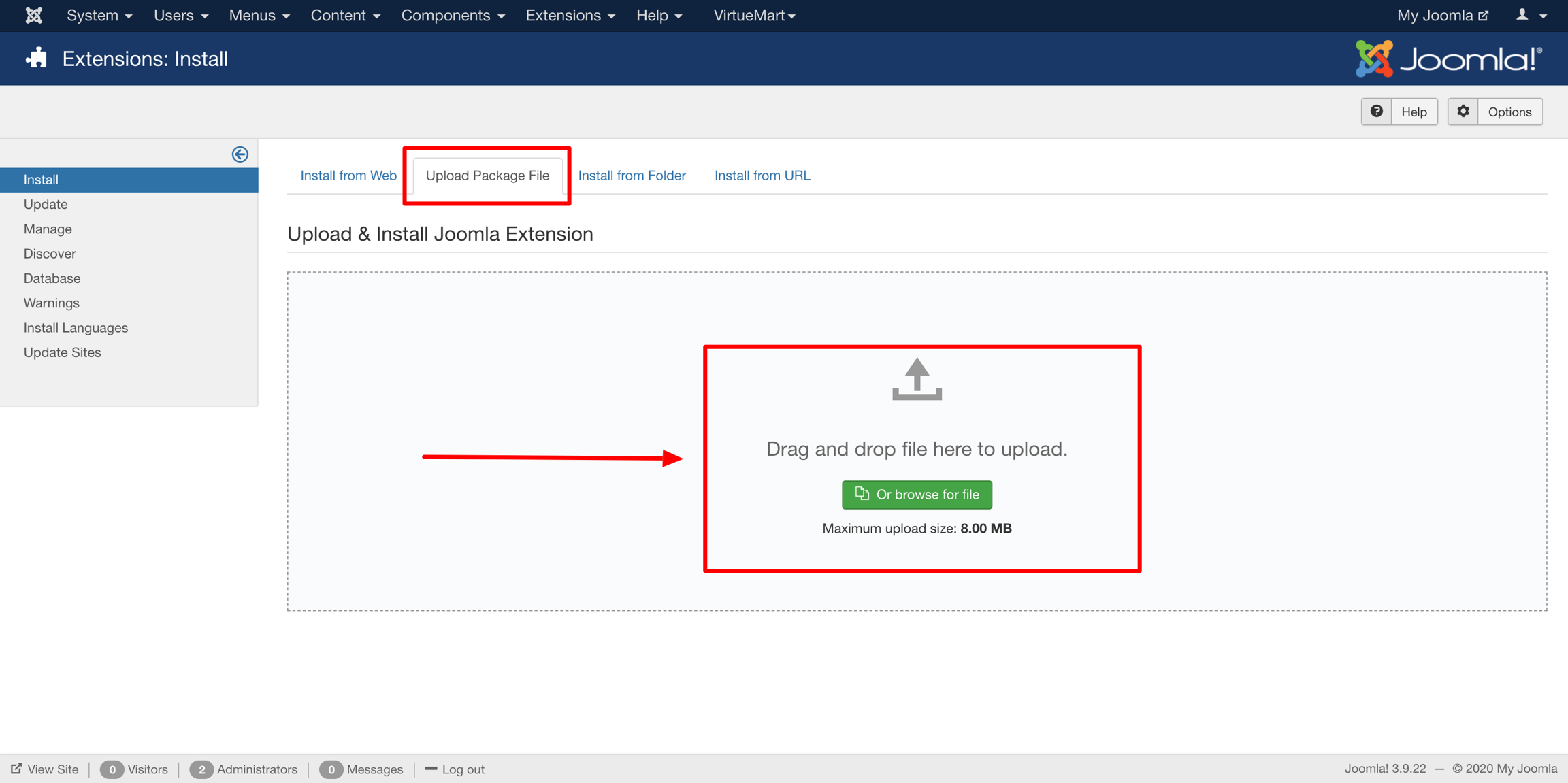 Select Upload Package File section tab.