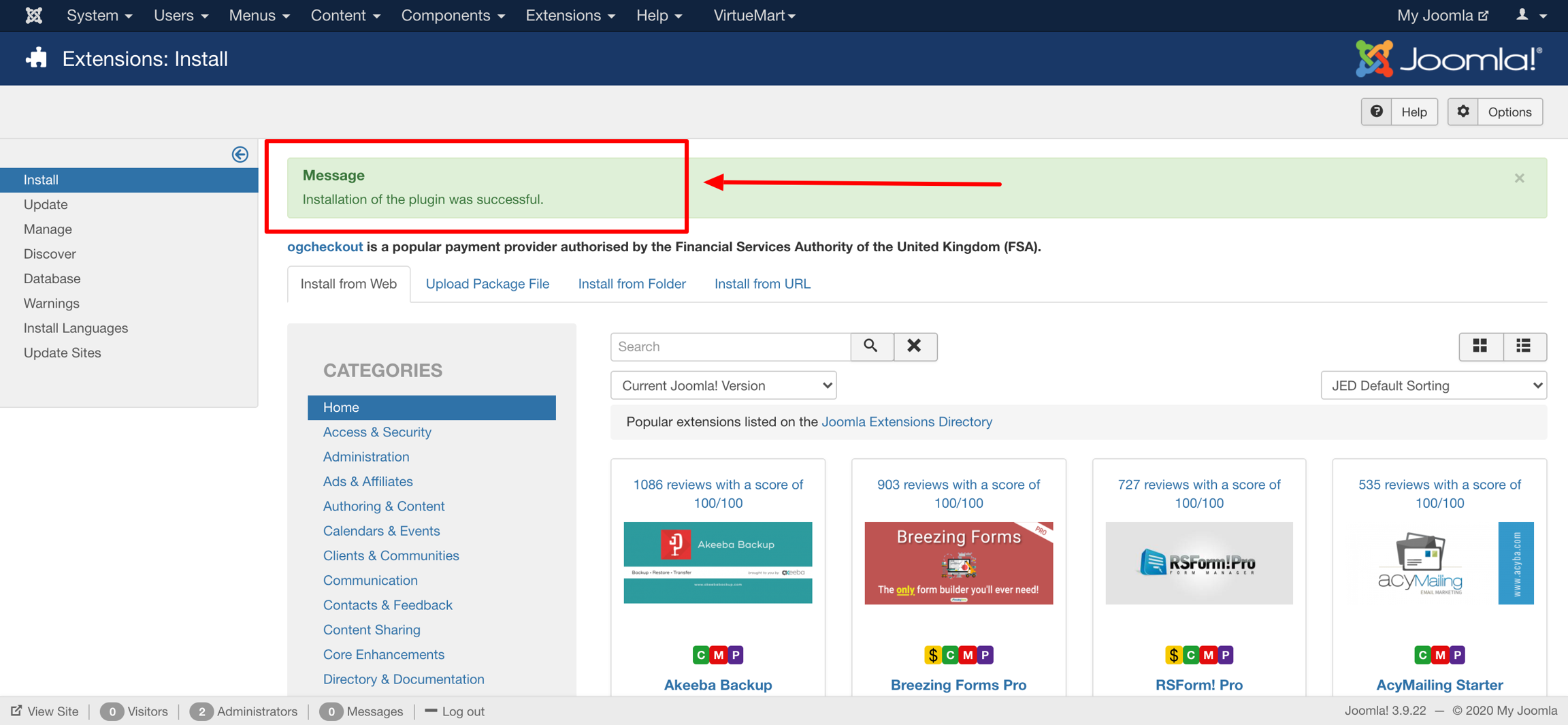Make sure the plugin installed successfully without any errors.