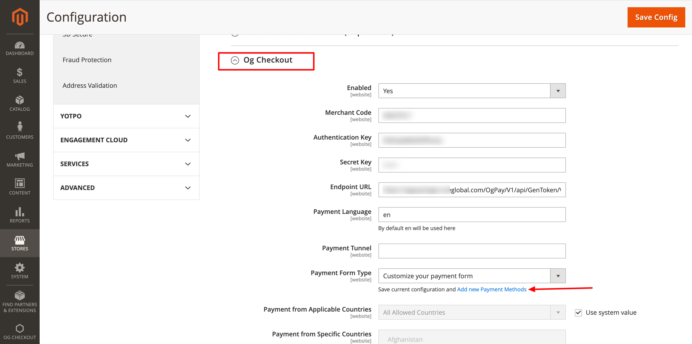 Step 4: Configure Your Keys & Credentials and add payment methods.