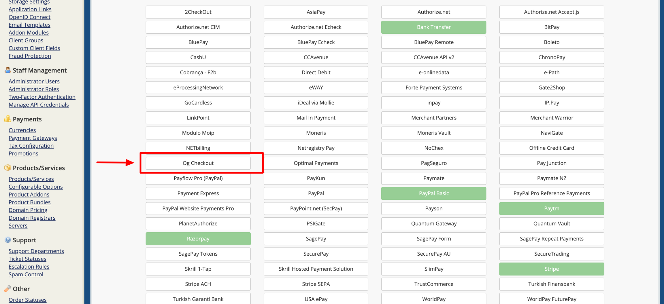 Go to Setup -> Addon Modules -> Casheer Pay -> Configure Your Payment Methods.